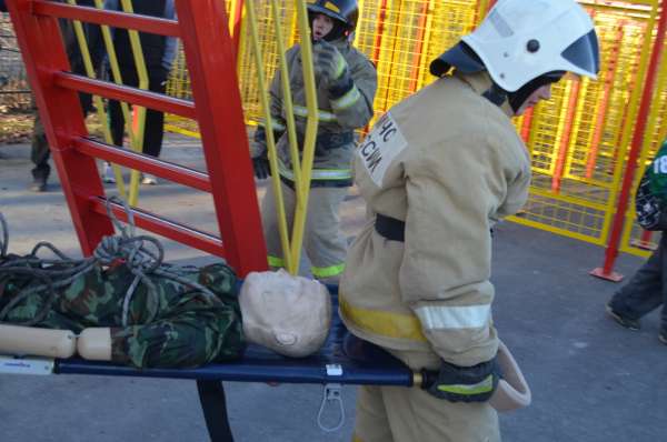 Начинается он с подъема и преодоления препятствий на большой высоте, спасения пострадавшего, преодоления лабиринта. Одним из ключевых моментов становится спуск в колодец, предназначенный для подготовки к спасению людей из заглубленных помещений, колодцев, коллекторов… Как это будет происходить, студенты демонстрируют с помощью манекена, которого аккуратно спускают с большой высоты. Студенты выполняют и другие, не менее сложные задачи, благодаря которым даже непосвященным становится ясно – полоса поможет учащимся совершенствовать мастерство. А завершается тестовый забег подъемом еще на одну высоту с российским флагом в руках. И сразу же внимание привлекает туристическая полоса, где девушки демонстрируют сложные подъемы и спуски.