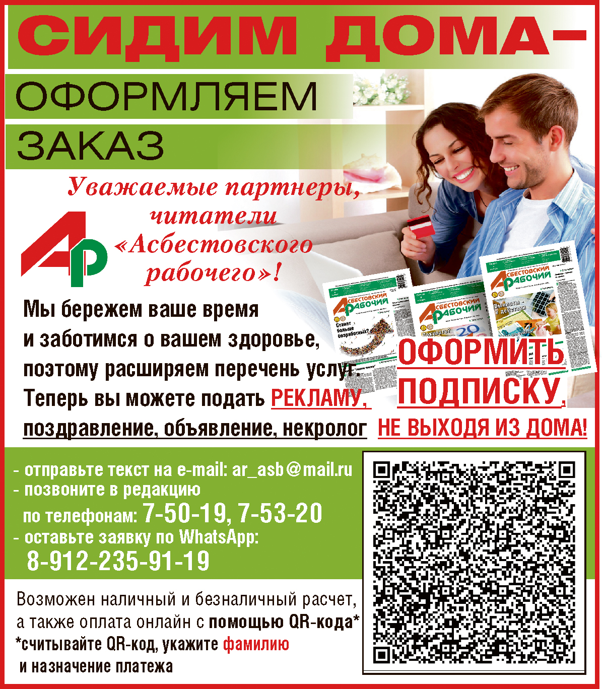 Редакция газеты «Асбестовский рабочий» сообщает, что официальный сайт газеты расположен в сети Интернет по адресу - arasb.ru