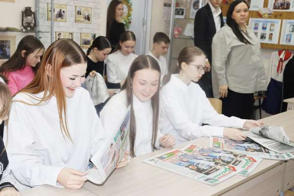 Инициатор мероприятия – руководитель музея им. Н.И. Кузнецова Галина НИКОЛИНА. Для глубокого погружения в тему она подготовила выставку образцов периодической печати разных лет. Школьники увидели газету «Правда» от 10 мая 1945 года, где Иосиф Сталин сообщает о Победе над фашистской Германией, и совсем свежие издания.